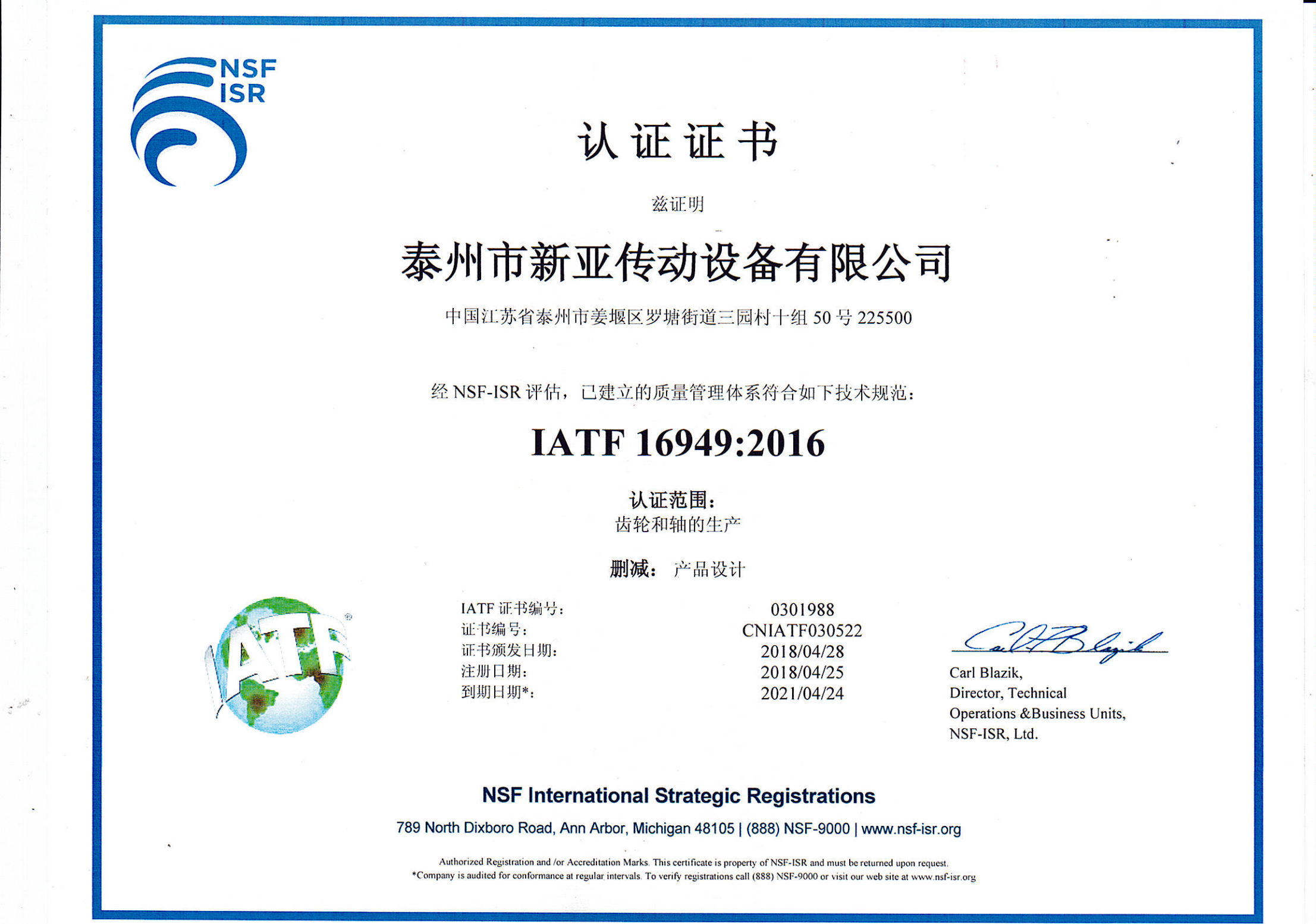 泰州市新亚传动设备有限公司成立于2014年,公司主导产品为轴类、齿轮类,离合器类等,广泛应用于新能源汽车、工程机械、纺织机械、印刷机械、食品机械。为满足客户需要,公司先后从韩国、日本等国家引进数控车床、数控磨床、数控加工中心、车铣复合一体机、插齿机、滚齿机、热处理炉等一流的生产设备,及红外线检测仪、三坐标、齿轮测试仪等检测设备。