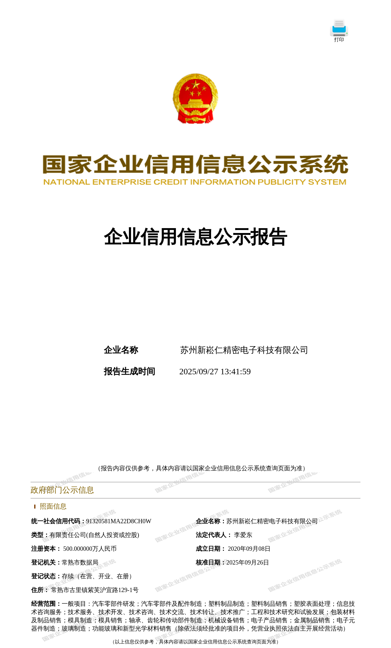 | 统一社会信用代码 | 91320581MA22D8CH0W | 成立时间 | 2020-09-08 |